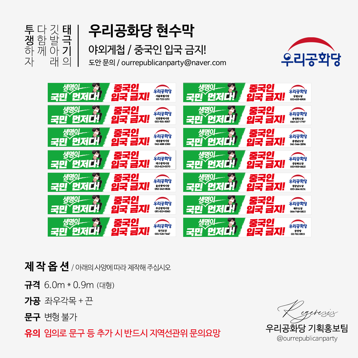 [Çö¼ö¸·µµ¾È] ±¹¹Î »ý¸íÀÌ ¸ÕÀú´Ù! Áß±¹ÀÎ ÀÔ±¹ ±ÝÁö! / ÀϹÝÇü : 6.0m * 0.9m (½Ã¡¤µµ´ç¸í ¹× ¿¬¶ôó ±âÀç) #¿ì¸®°øÈ´ç #Çö¼ö¸·